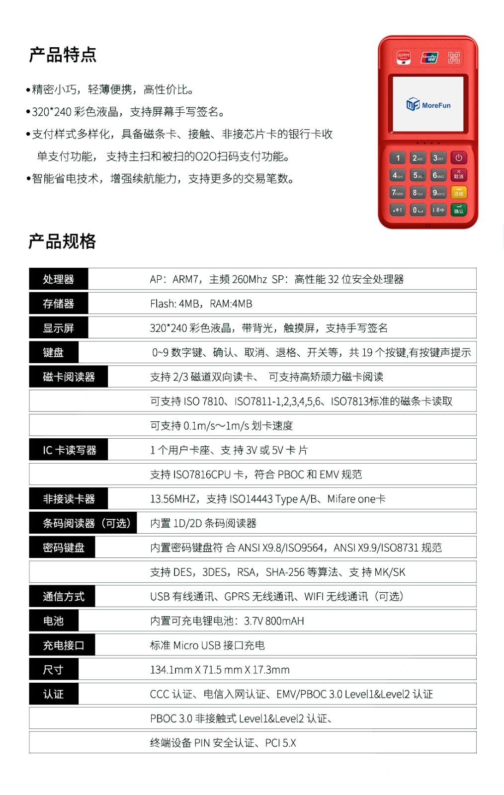 首页>>平谷产品中心>>平谷手持无线POS 平谷联动优势-优POS Pro 高配版 * 性能优越:32位高性能ARM11安全CPU;整机通过业内更先进的PCI PED4.X 安全认证及国内受理终端PIN输入设备安全评估检测认证,多项措施保障金融交易的安全;* 时尚外观:外形小巧携带方便,高抗跌落性能、宽工作温度、防水防尘设计、外壳坚固耐刮、户外携带式作业更加耐久可靠。* 通讯备份:支持2G-3G扩展;* 超长续航:3.7V-800毫安稳定续航能力,智能电池管理保证持续工作18小时,待机72小时。 标准配置 返 回